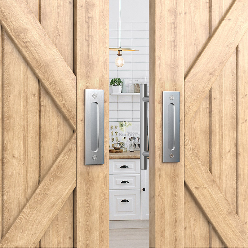 HIGH QUALITY: The 90°barn door lock is constructed of high quality stainless steel, the surface is brushed, durable and sturdy. Barn door latch can enhance privacy for children or pets and deter unwanted guests, protect your safety.