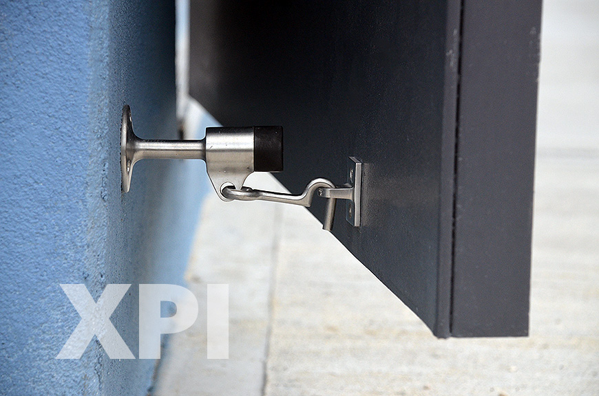 Functions as a stop, but serves as a Hold-Open device when hook is manually engaged in strike.