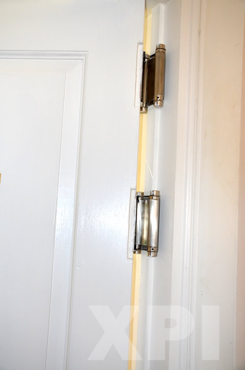 Dig free floor spring, needs a min door thickness of at least 40mm, as the width reaches 33mm the edge needs at least 3mm, so the spring can be hidden side the door.