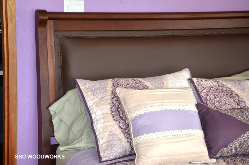 Fabulous Bed in semi-sleigh style. Cushioned headrest with stud detail.