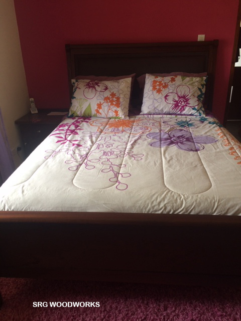 Lovely Bed in semi-sleigh style. Cushioned headrest with stud detail.