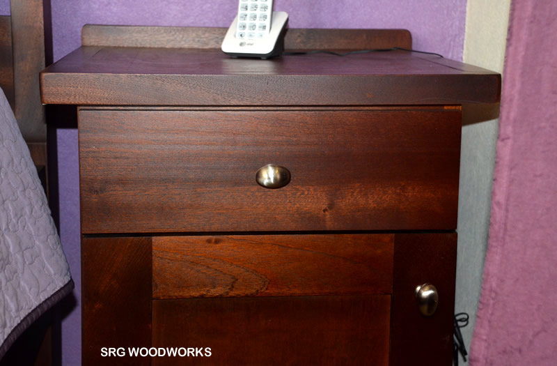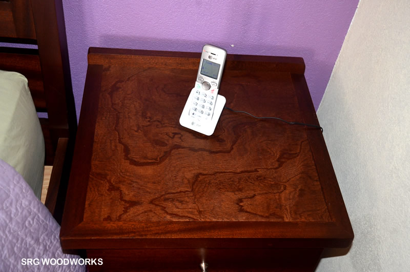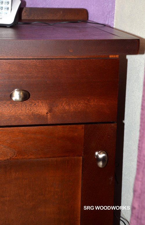 Compact side table with lustrous finish, complimented with silver toned hardware.