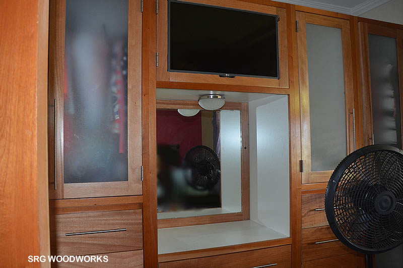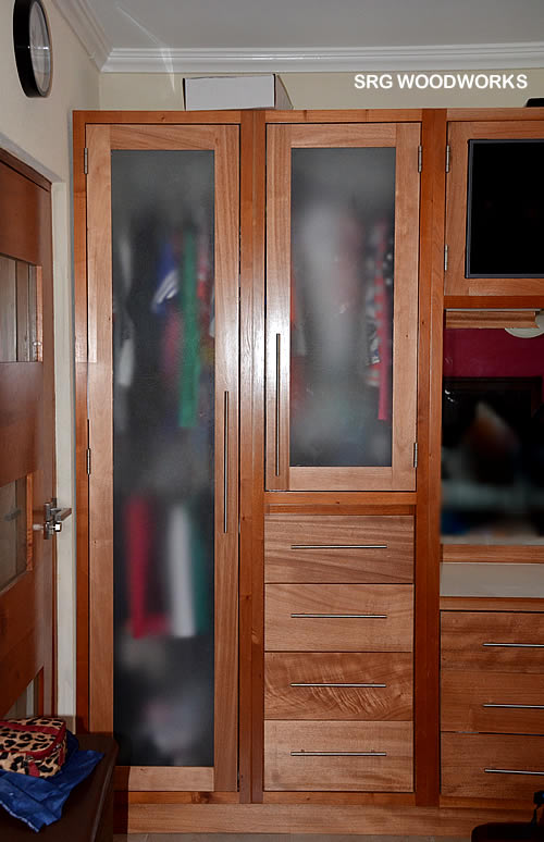 Lovely Wardrobe with semi-opaque glass panels. TV insert and drawers.